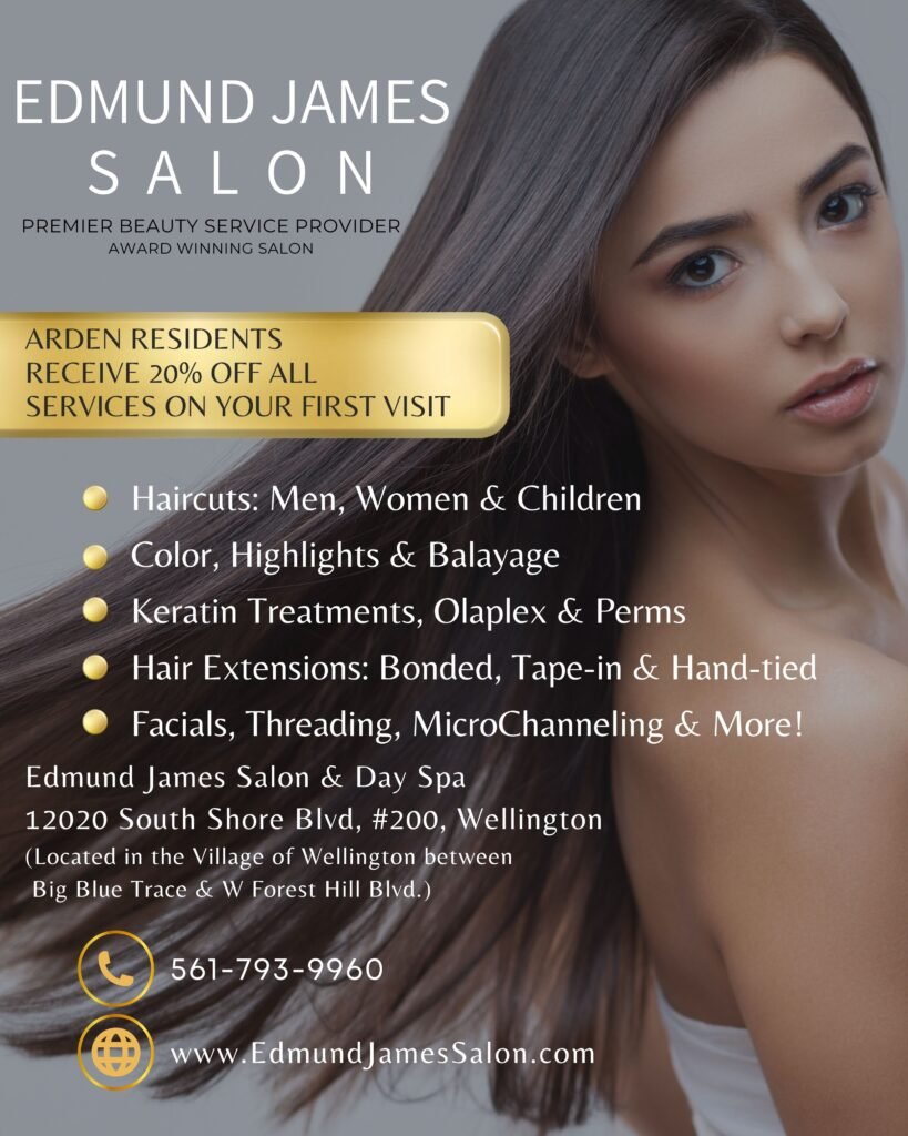 Mar 13 2026Beauty and Health, ♥Edmund James Salon by Lillian Sorieroby admin1 viewsNo Comments 0HaircutsColorHair TreatmentsAnd much morewww.edmundjamessalon.comLILLIAN SORIEROPhone: 5617939960Discounts for our Arden Residents!!